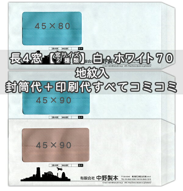 【送料無料】封筒 印刷 長4窓【窓サイズ2種類】窓付封筒・白ホワイト 紙厚70地紋入 封筒印刷 5000枚 名入れ オリジナル印刷 デザイン無料 データ入稿OK そのまま封筒 オンデマンド・オフセット印刷