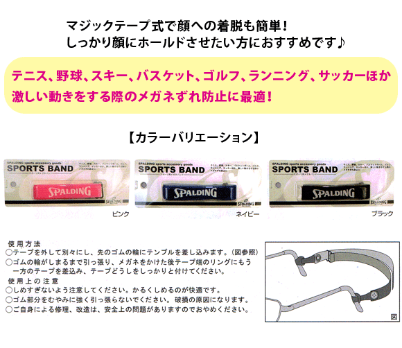 郵送なら送料無料!メガネのズレ落ち防止に♪【SPALDING SPORTS BAND(スポルディングスポーツバンド)全3色】スポーツ用メガネバンド★マジックテープ式で着脱も簡単♪激しい動きをする際のメガネのずれ防止に。