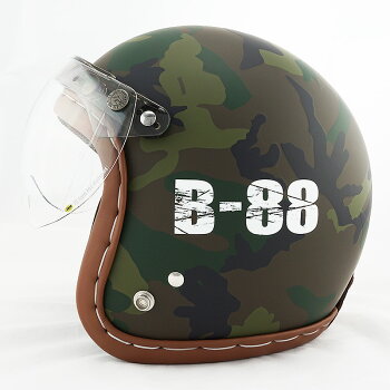 ■定番の迷彩パターンに、「B-88」の製品コードをステンシルにて施した、マット仕上げのデザインジェットヘルメット。