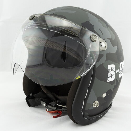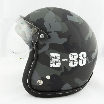 ■定番の迷彩パターンに、「B-88」の製品コードをステンシルにて施した、マット仕上げのデザインジェットヘルメット。